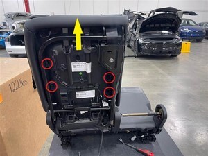 Note4x fastener, 3x 10mm, 6 Nm, 1x T25, 1.5 Nm, 1x clip, Remove remaining bolts attaching seat pan to seat frame