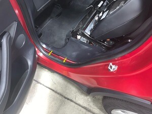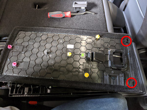 Note5x patch bolts, 11mm, 37 Nm, Install new patch bolts, Bottom seat bolts located behind main carpet, Torque in sequence; Outboard front -> Both inboard rear -> Outboard rear -> Inboard front
