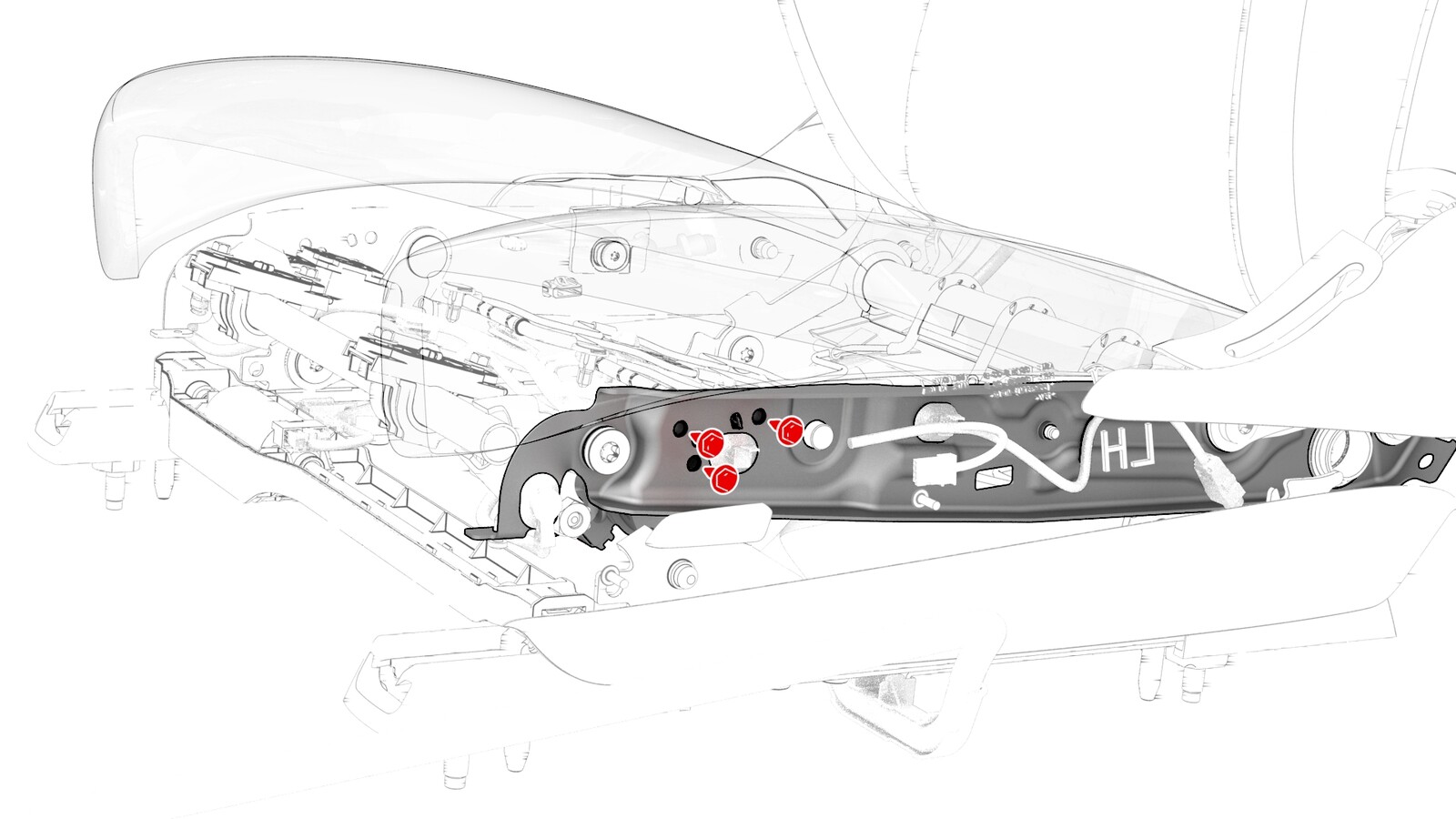 Install the bolts (x3) that attach the driver seat tilt motor to the seat