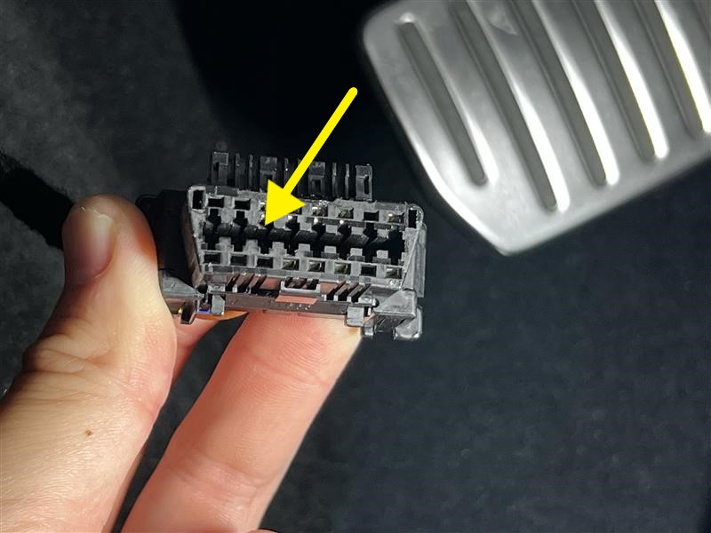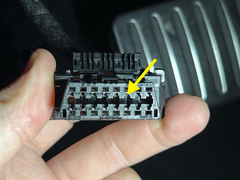 4. Remove Pin 11 (white) wire terminal from OBD connector.
