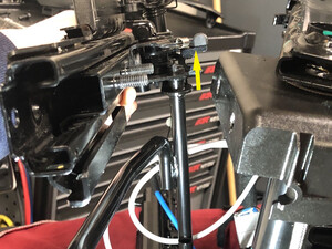 Slide the RH 2nd row seat outer track away from the towel bar to remove it