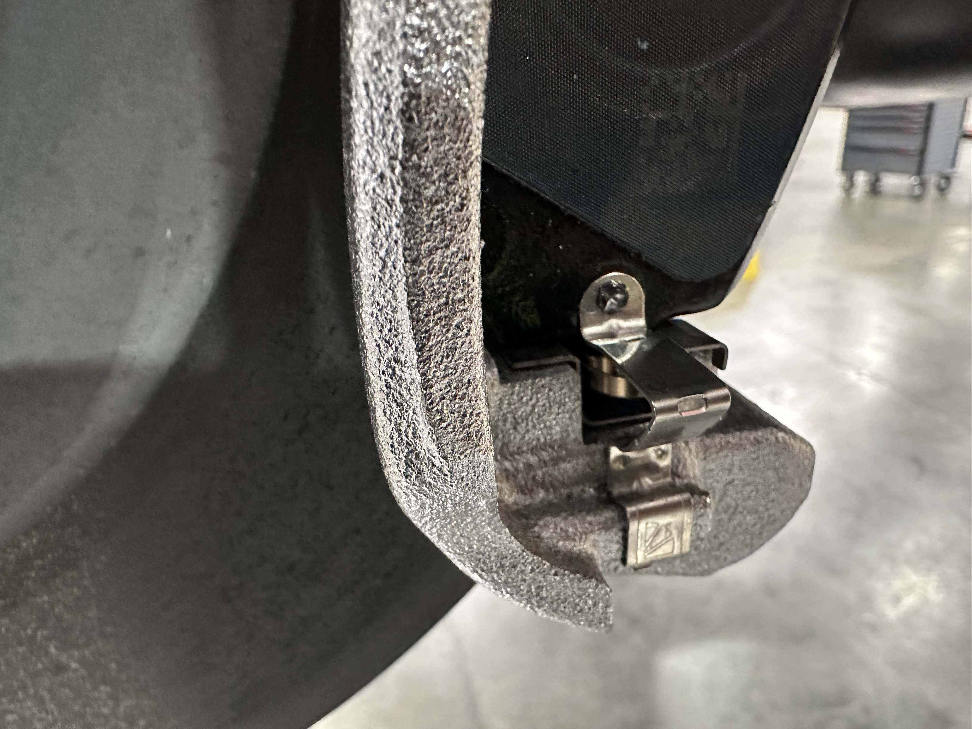 - Use a brake caliper S-hook to hang the LH front caliper on the body.