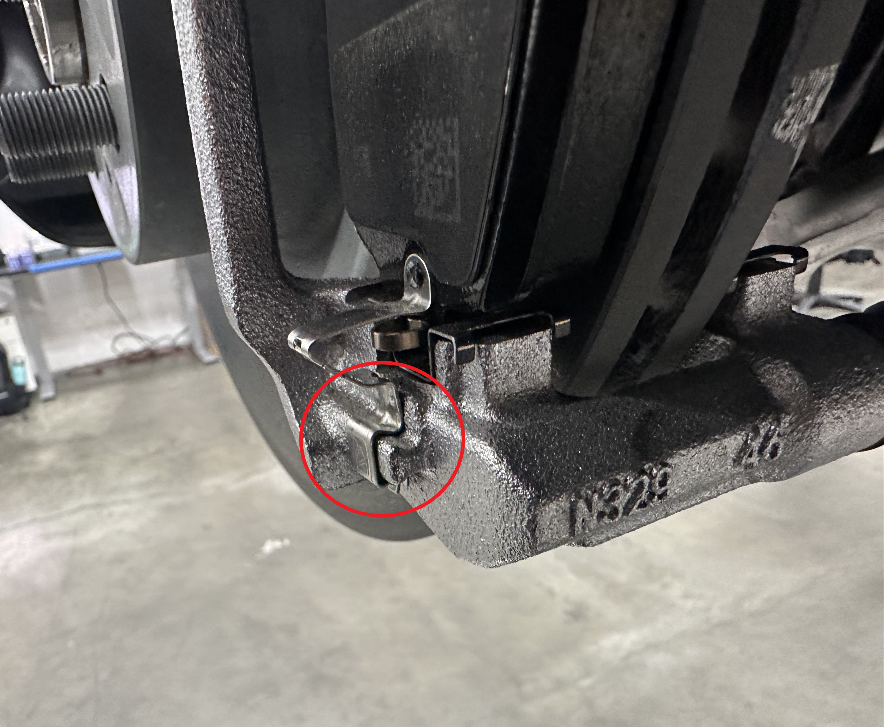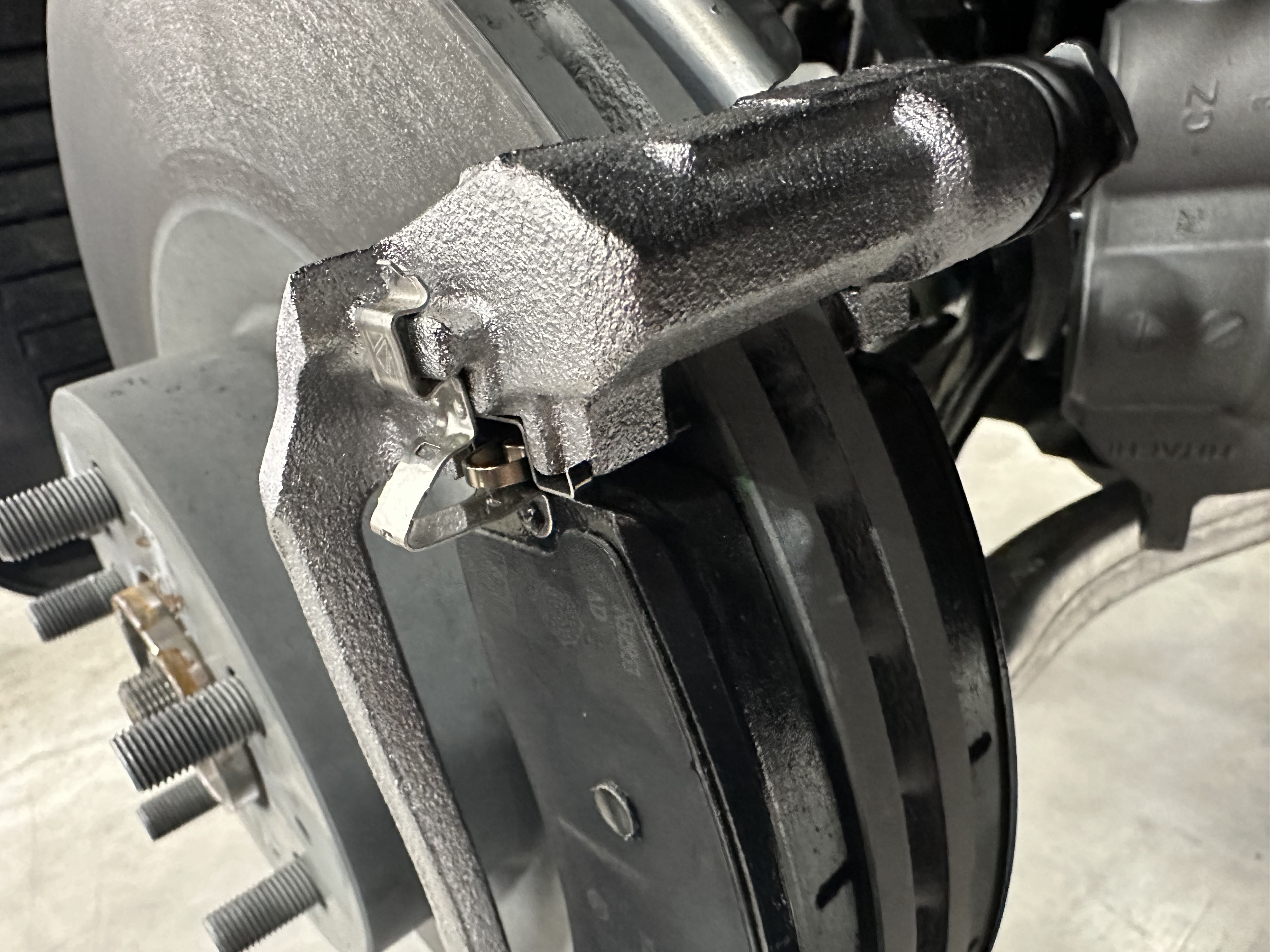 - Repeat step 1 through step 3 to install the RH front brake pads.