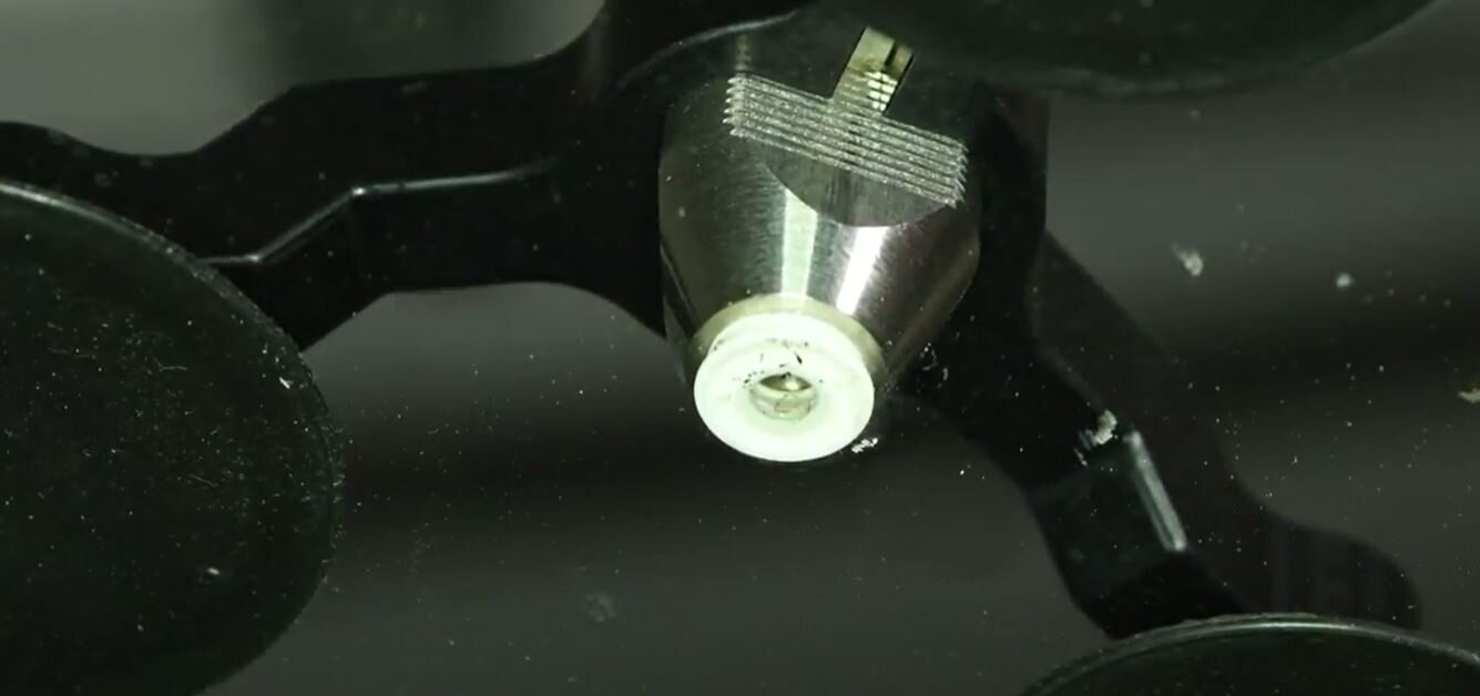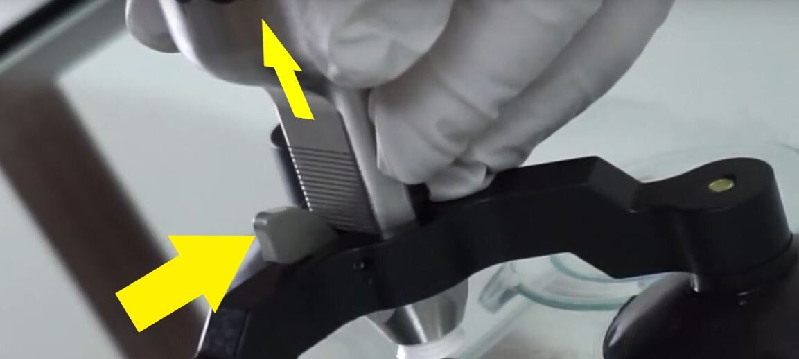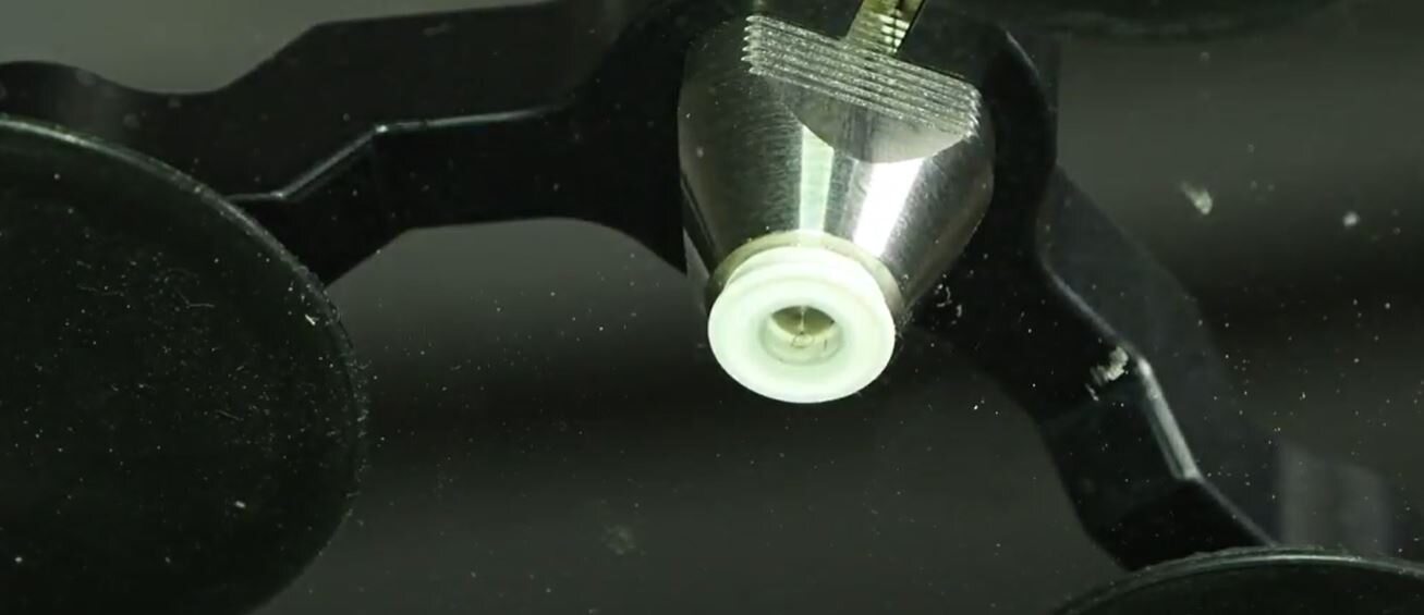 Push in the injector until the white seal touches the glass, and then push 1 to 2 additional clicks to ensure a proper seal.
