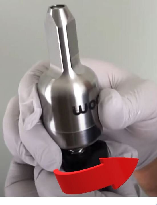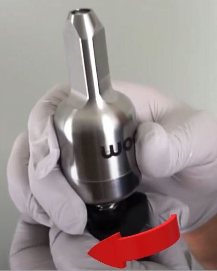 - With the injector piston turned fully clockwise, back the piston down by turning counter clockwise until there is approximately 1/2 inch space between the end of the injector and the piston.