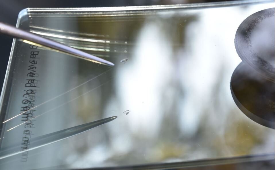 Apply one drop of Pit Filler just above the impact point, and then place a clean dry film tab over the filler.