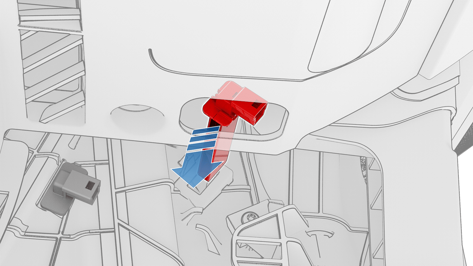 Route the LH upper duct thermistor through the access hole in the trim, and then push the LH upper duct thermistor into the HVAC assembly until the retaining clips are fully secure.