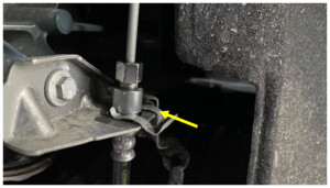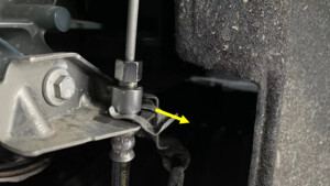 CAUTIONMake sure that the brake hose can bend forward and does not make contact with the wheel liner when the vehicle is lowered.