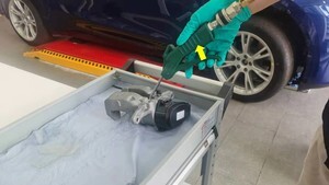 Disconnect LH rear EPB caliper connector