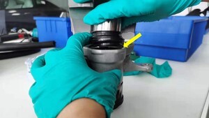 NoteDuring insertion stage, the piston must be coaxial with its seat, otherwise the gasket may be damaged, Press the piston evenly into the brake caliper and adjust it to the piston installation position, Check whether the dust boot is in place