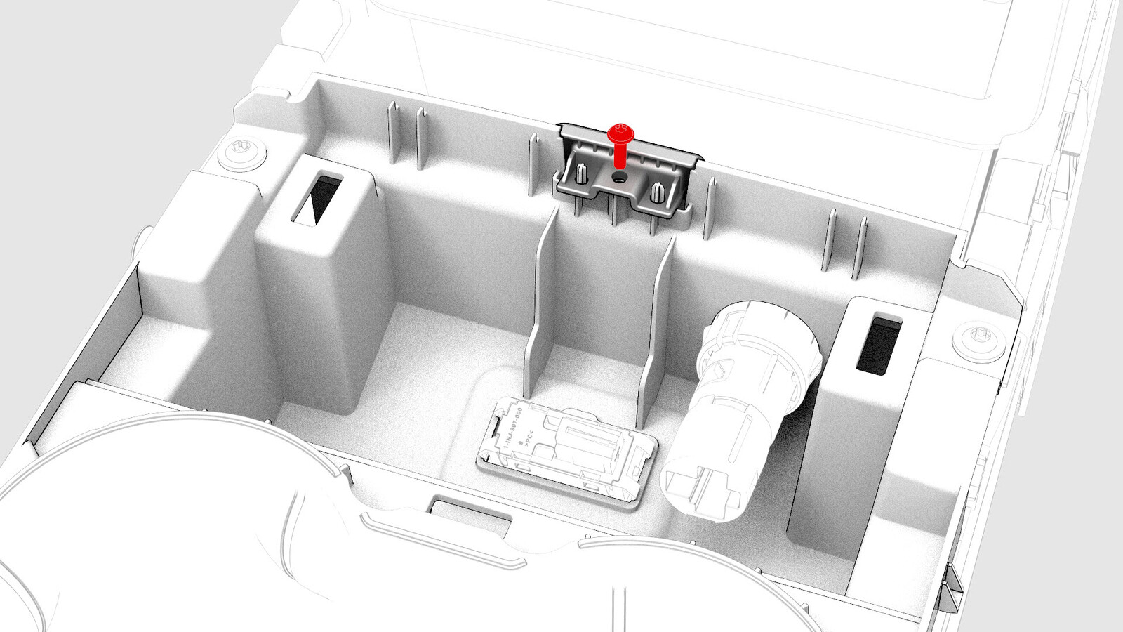 | Screw that attaches the armrest latch grommet to the cup holder |