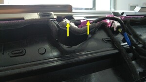 Release the connectors (x2), clips (x7), harness fixing brackets (x3), and magic tapes (x6) that attach the main instrument panel decor trim, and then remove the trim from the instrument panel.