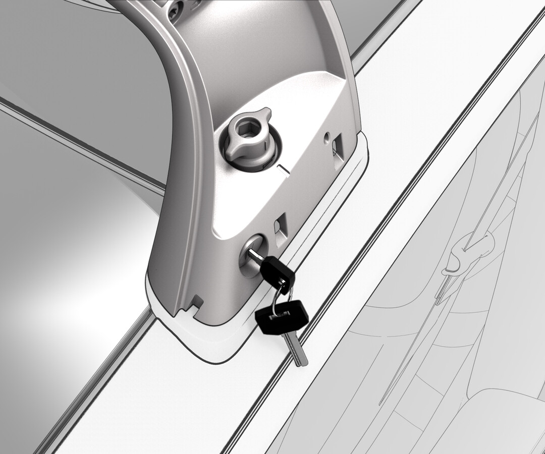 Use the provided keys to lock (rotate clockwise on LH side locks, rotate counter-clockwise on RH side locks) both crossbars in place.