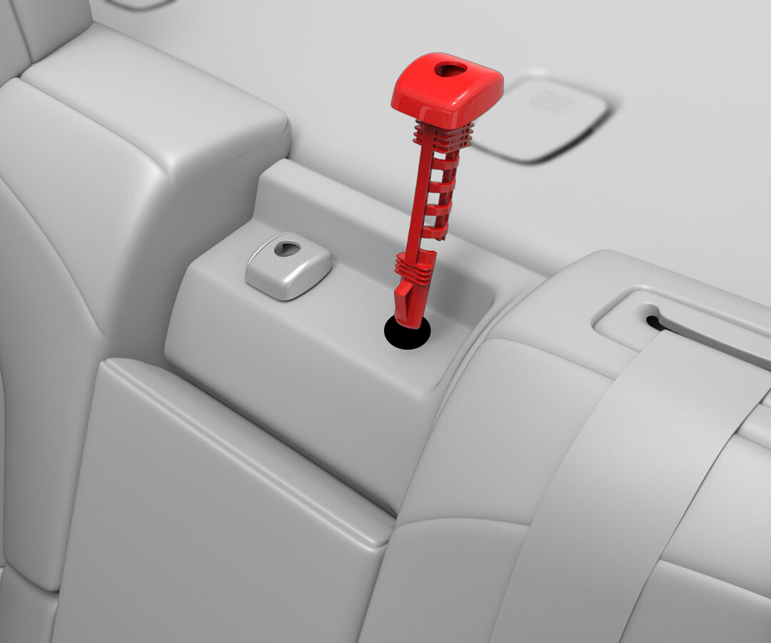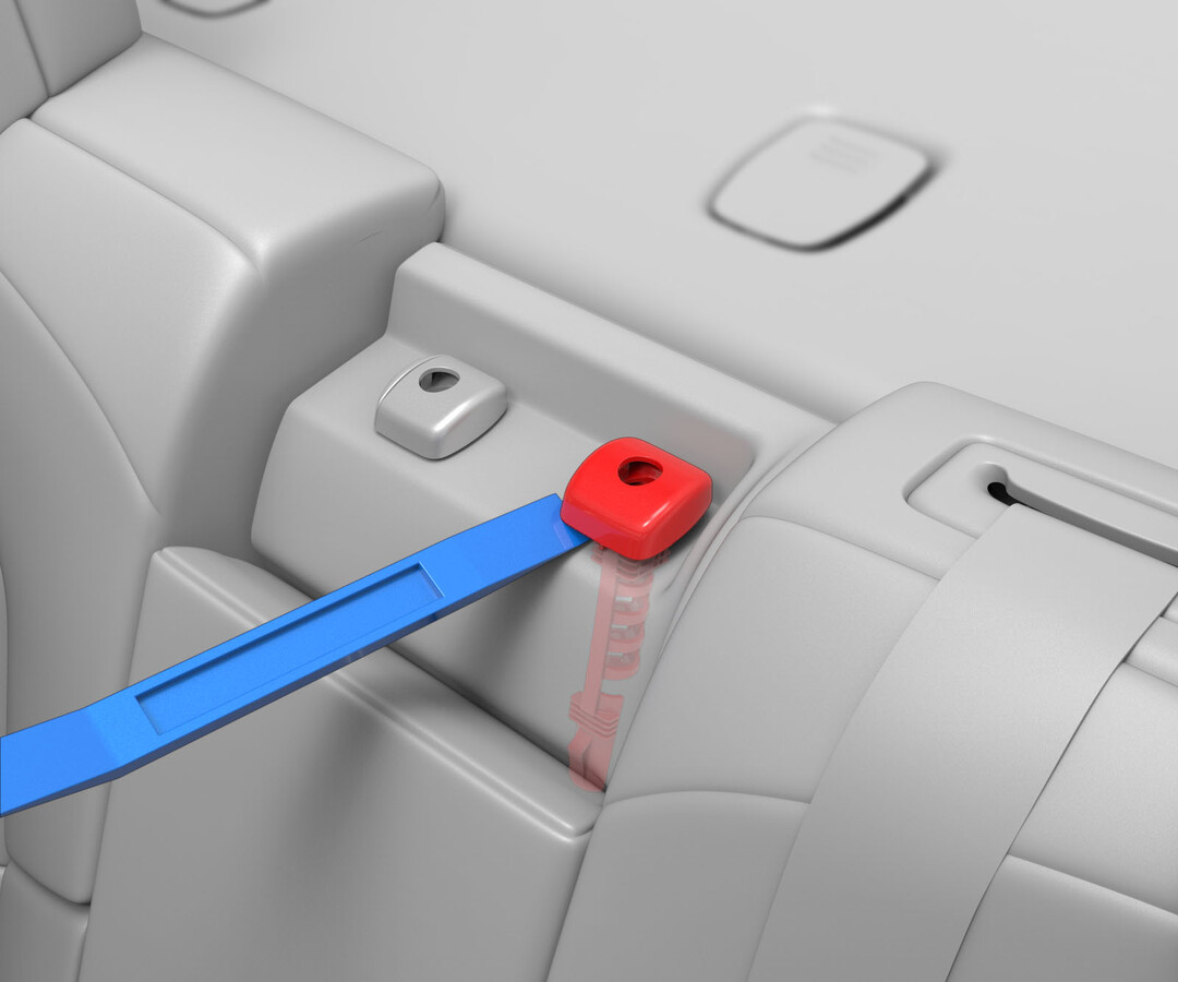 Fully insert the guide lock into the seat so that the opening on the guide lock faces towards the RH side of the vehicle.