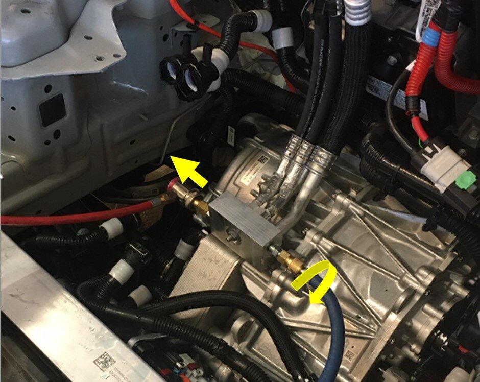 - Remove the clip that attaches the A/C compressor logic harness to the A/C compressor HV harness bracket.