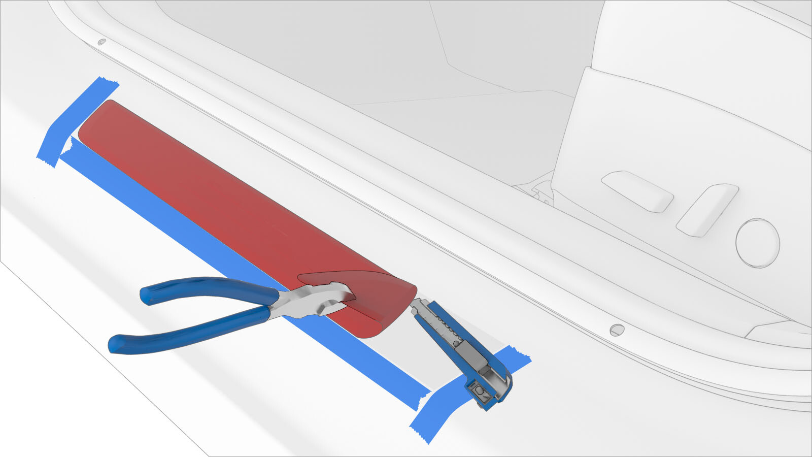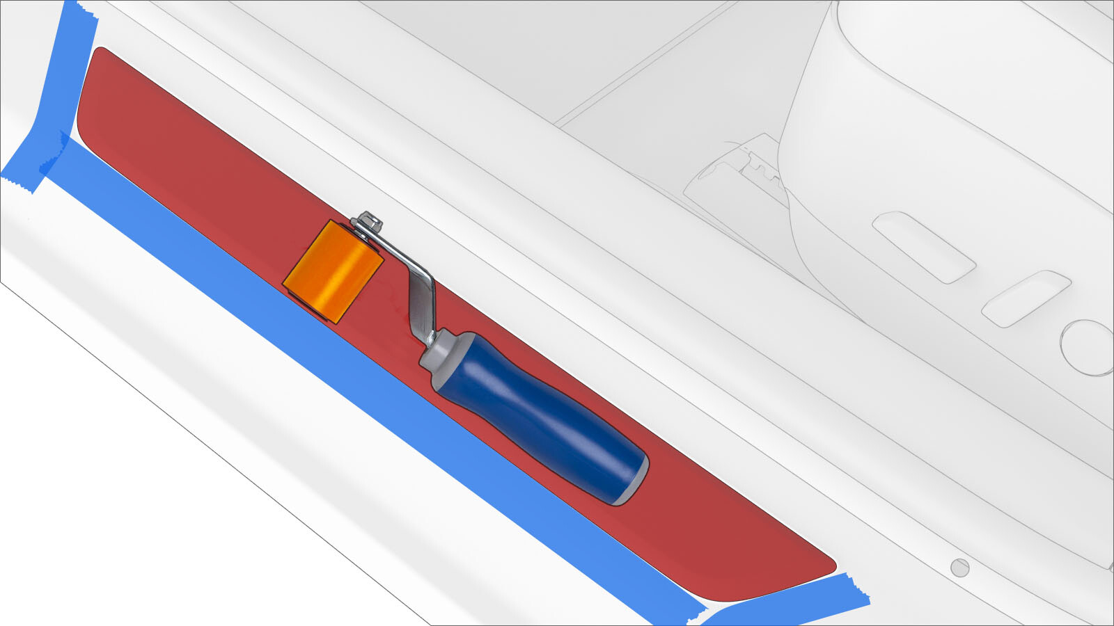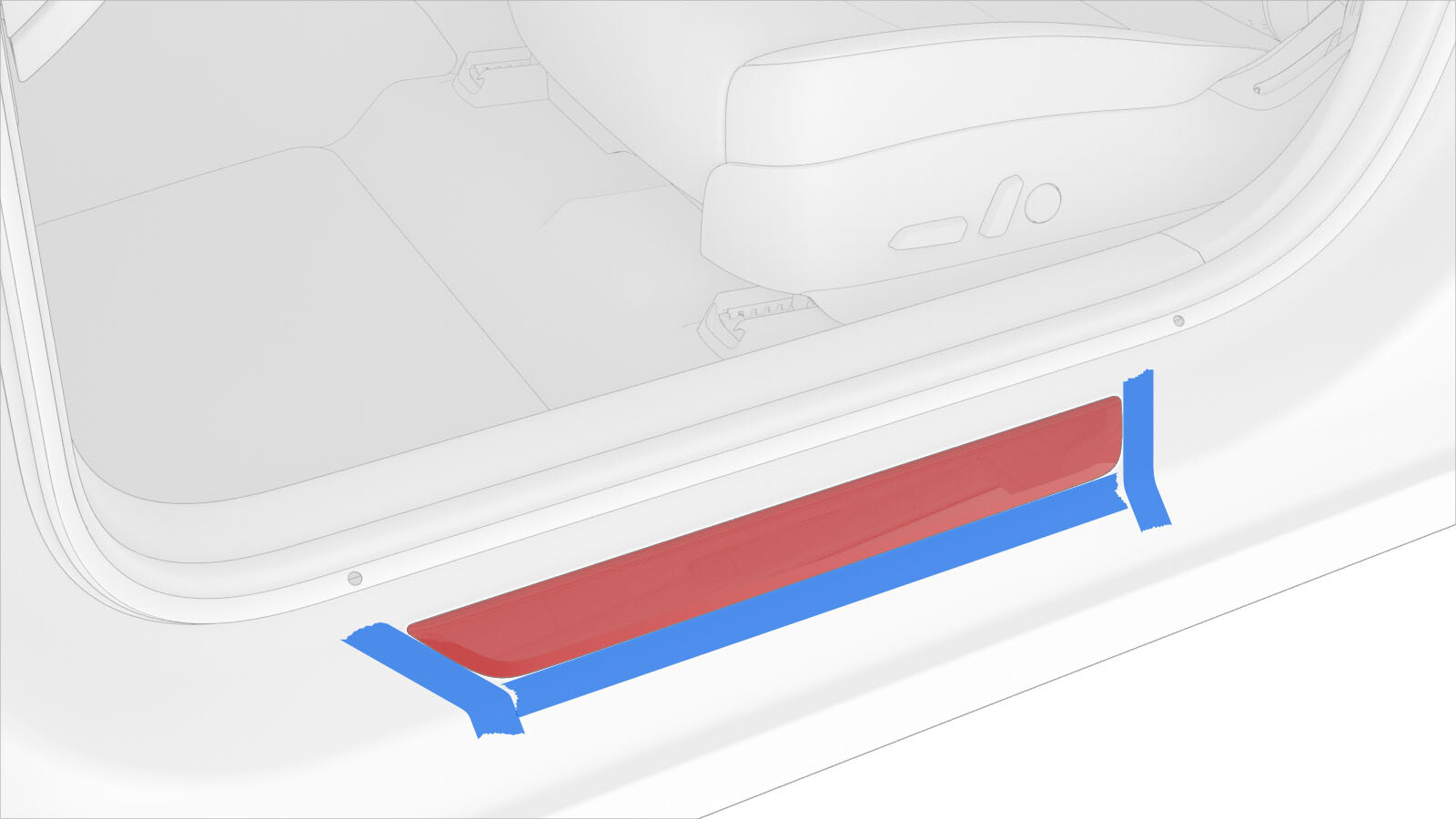 2. Using the masking tape as a guide, carefully place the new sill plate into place and press down on it to adhere it to the vehicle.