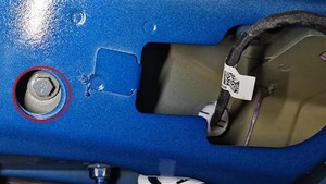 Tighten the bolt that attaches the liftgate hinge to the vehicle.