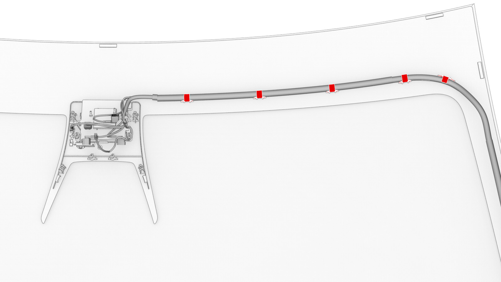 Fasten the clips that attach the upper quad camera cover to the windshield bracket.