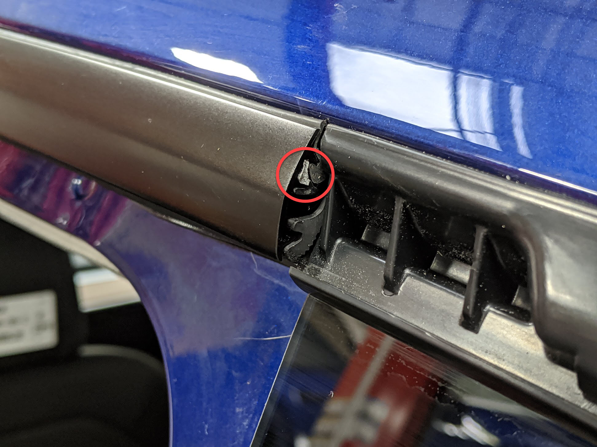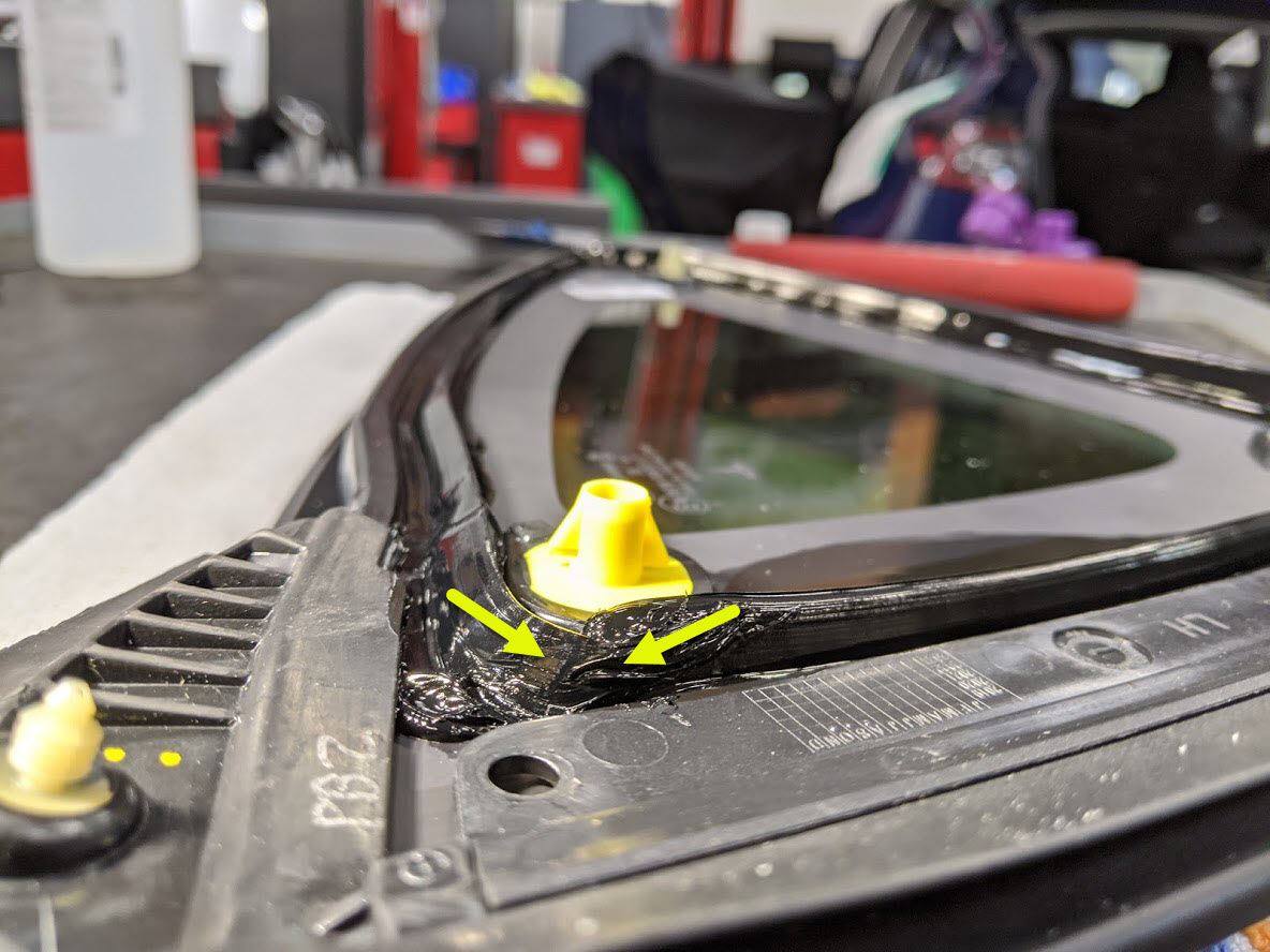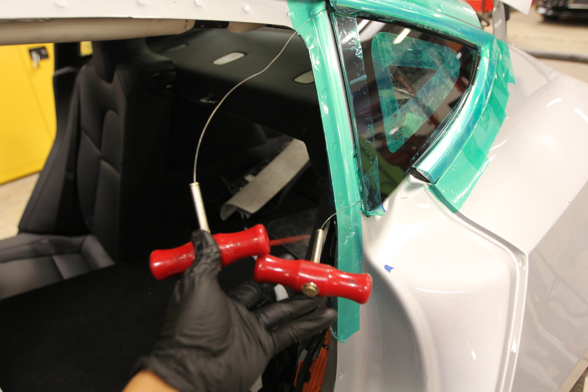 - Clean the remaining urethane from the LH rear quarter glass using a plastic trim tool.