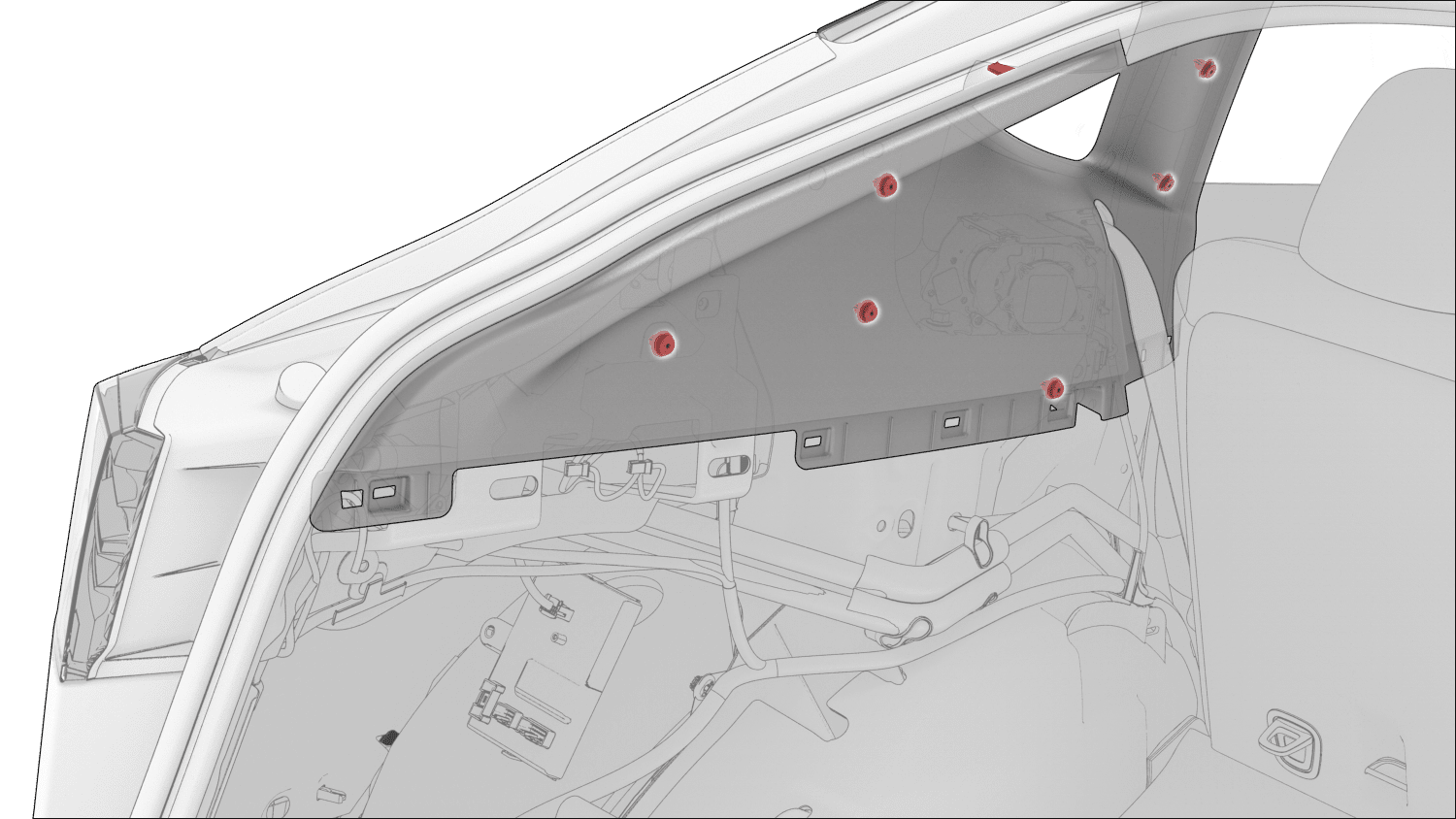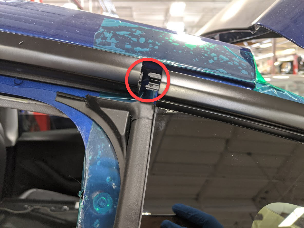 tab (x1) that attach the LH upper C-Pillar trim to the vehicle, and then set