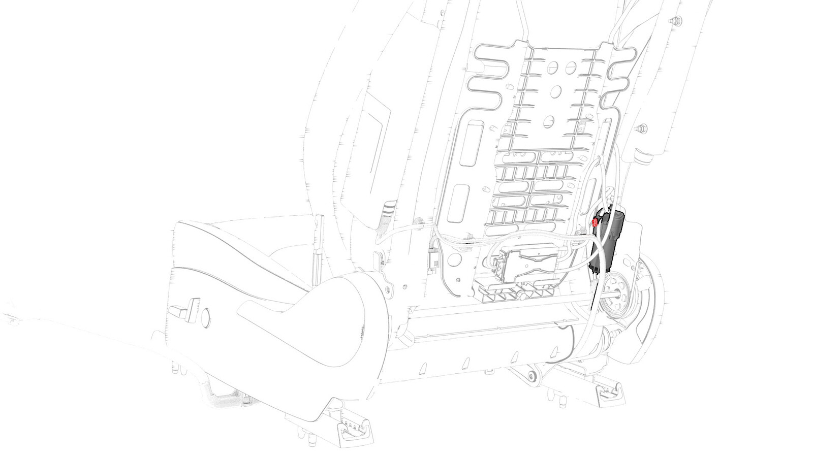 Release the clips that attach the lumbar pump pouch to the seat frame, and then separate the pouch from the seat back.