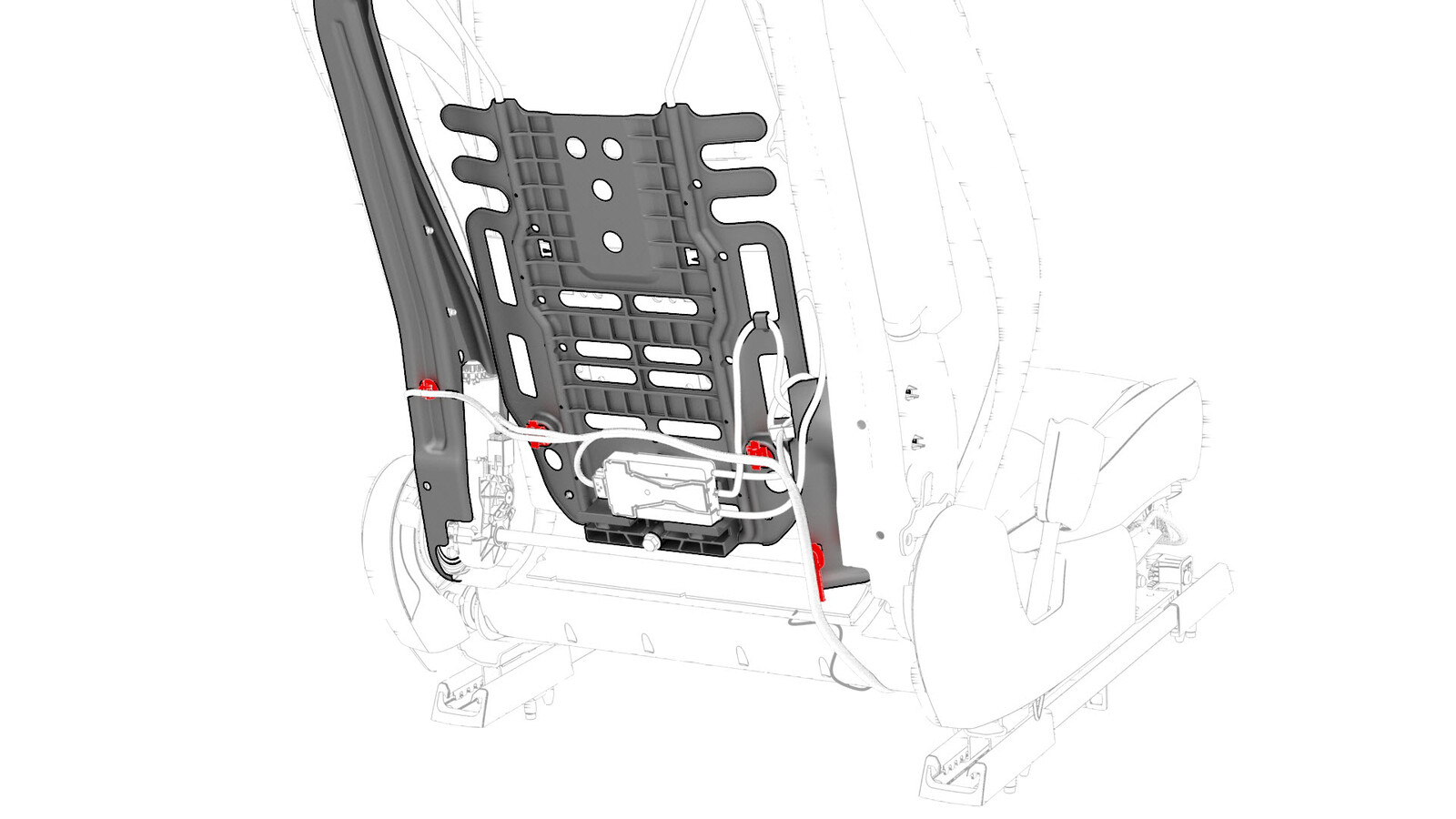 Remove the bolt that attaches the lumbar support assembly to the seat frame.