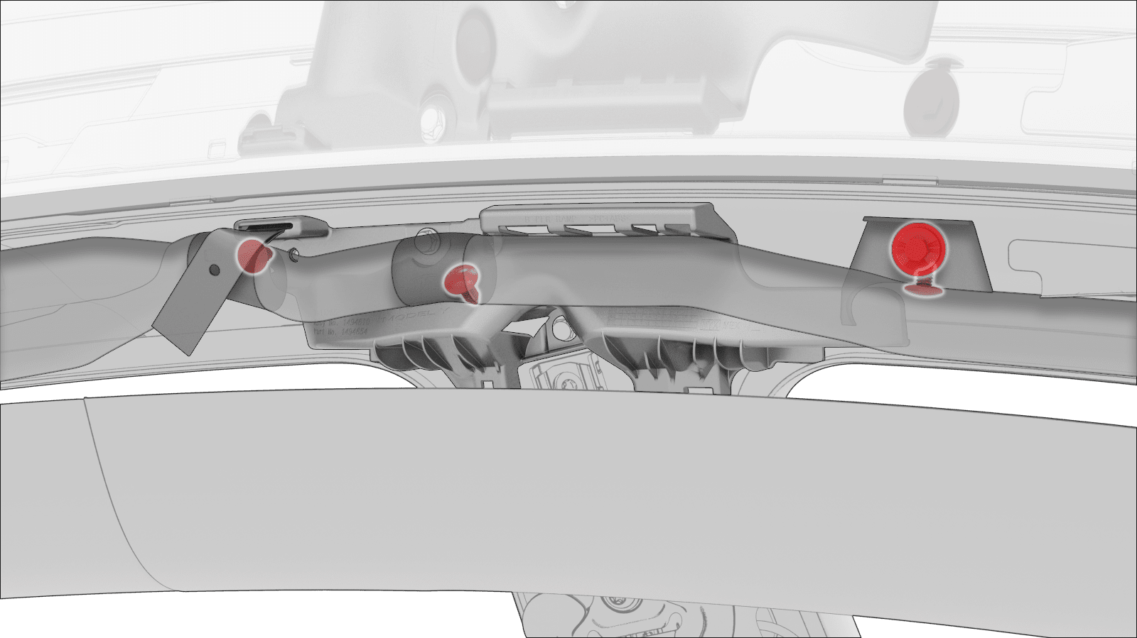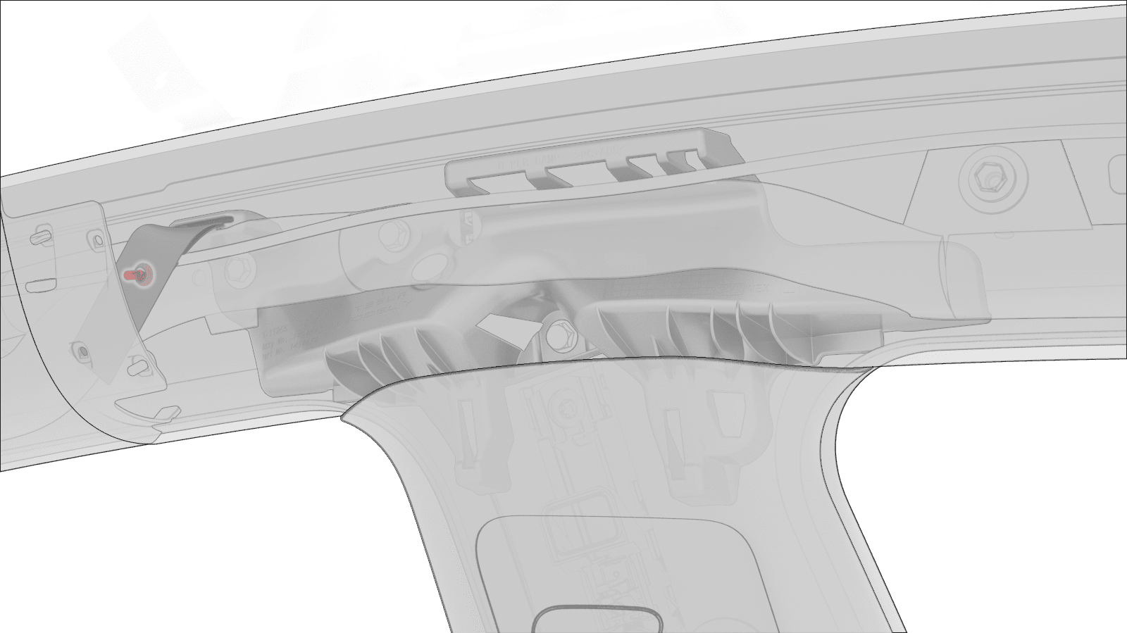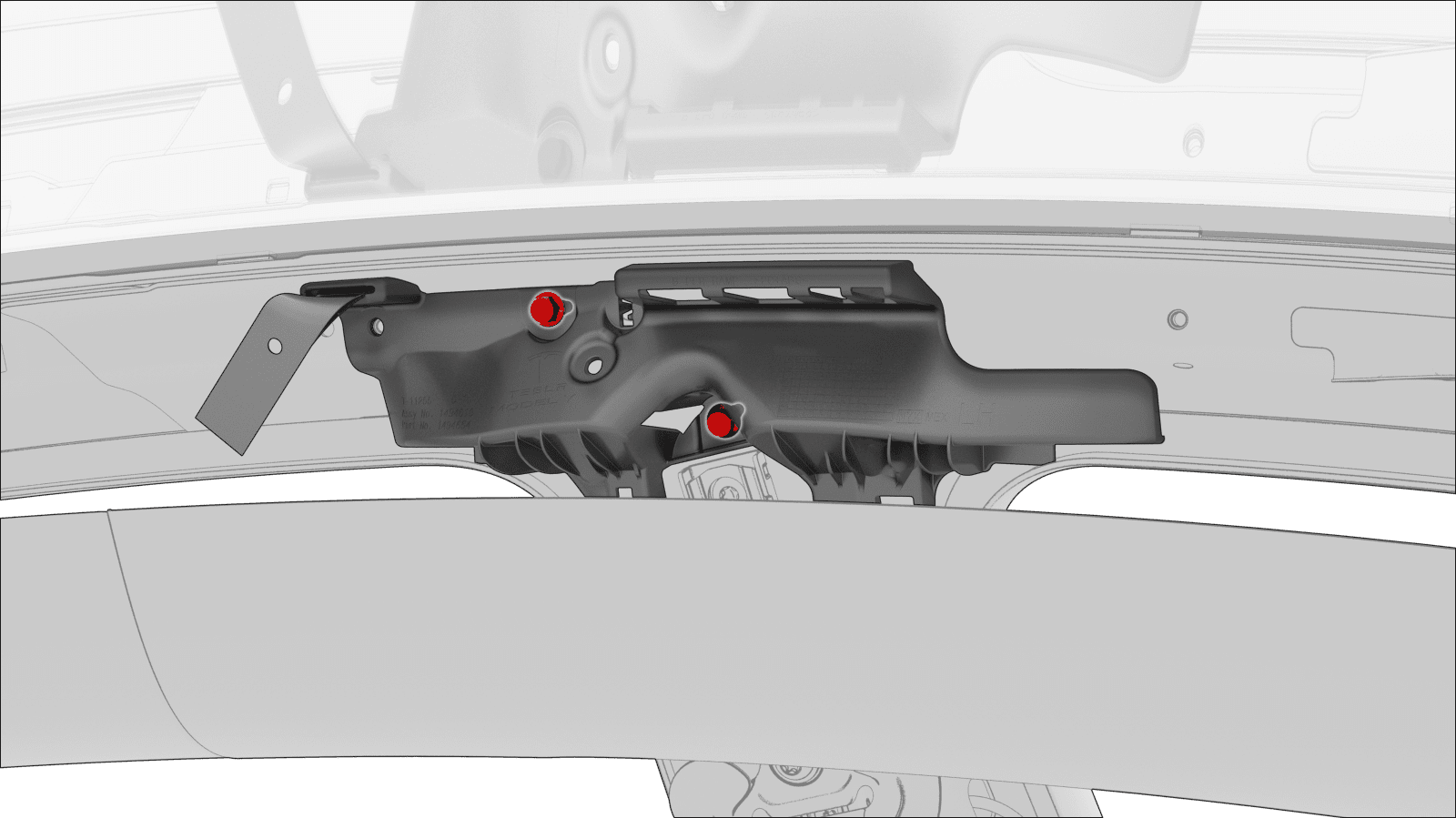 - Open the LH coat hook screw cover, and then remove the screw (torque 1 Nm).