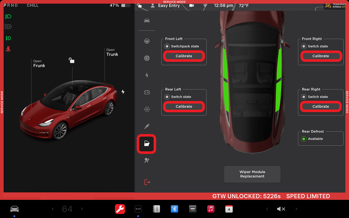 Correction code 11500010 0.06 NOTE: Unless otherwise explicitly stated in the procedure, the above correction code and FRT reflect all of the work required to perform this procedure, including the linked procedures. Do not stack correction codes unless explicitly told to do so. NOTE: See Flat Rate Times to learn more about FRTs and how they are created. To provide feedback on FRT values, email ServiceManualFeedback@tesla.com. NOTE: See Personal Protection to make sure wearing proper PPE when performing the below procedure. See Ergonomic Precautions for safe and healthy working practices.