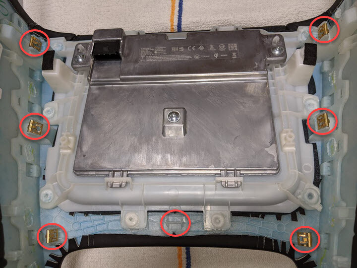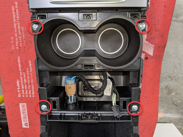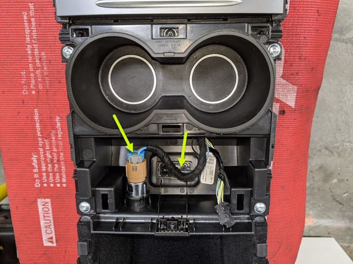 module electrical connector, and then fasten the clips (x6) that attach the cup holder