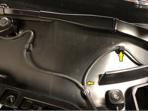 Connect washer hose from washer pump to Y-tube fitting and secure washer hose clip