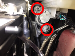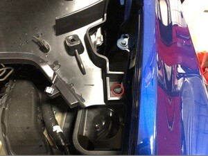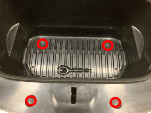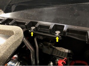 Note5x bolts, 10mm, 5 Nm, Newer vehicles may be equipped with 1x push clip securing frunk to reservoir neck