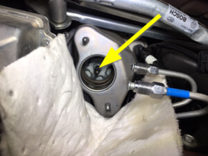 - Flush the RH front caliper using the inner bleed valve until a noticeable reduction in air bubbles is observed.