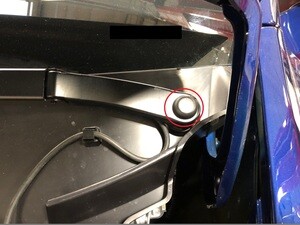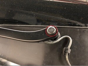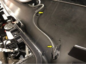 Disconnect washer hose from LH wiper arm to Y-tube fitting and release washer hose clip