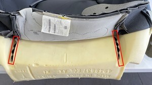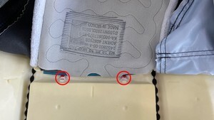 - Unhook the lower flaps that cover the LH and RH lower corners of the seat back frame.