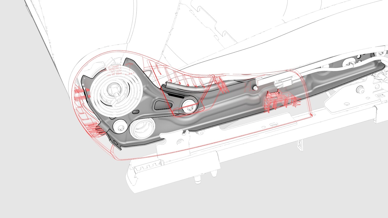 Remove the bolt that attaches the bottom of the lumbar support to the seat