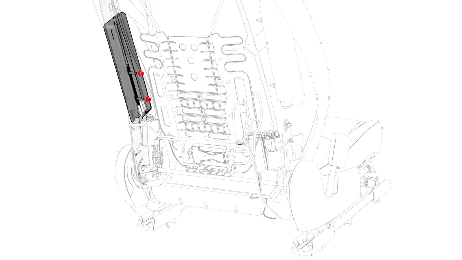 - Hook the lower flaps that cover the LH and RH lower corners of the seat back frame.