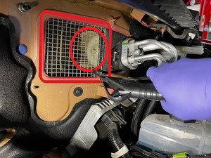 NoteRemove any loose debris from fresh air inlet seal before using blow gun.