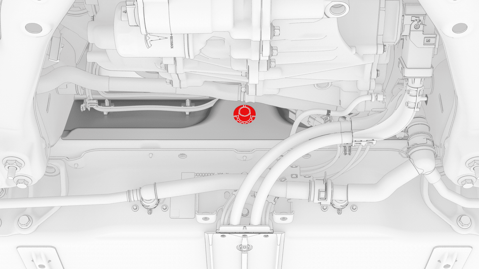 - Place a coolant drain container or absorbent material under the front of the vehicle.