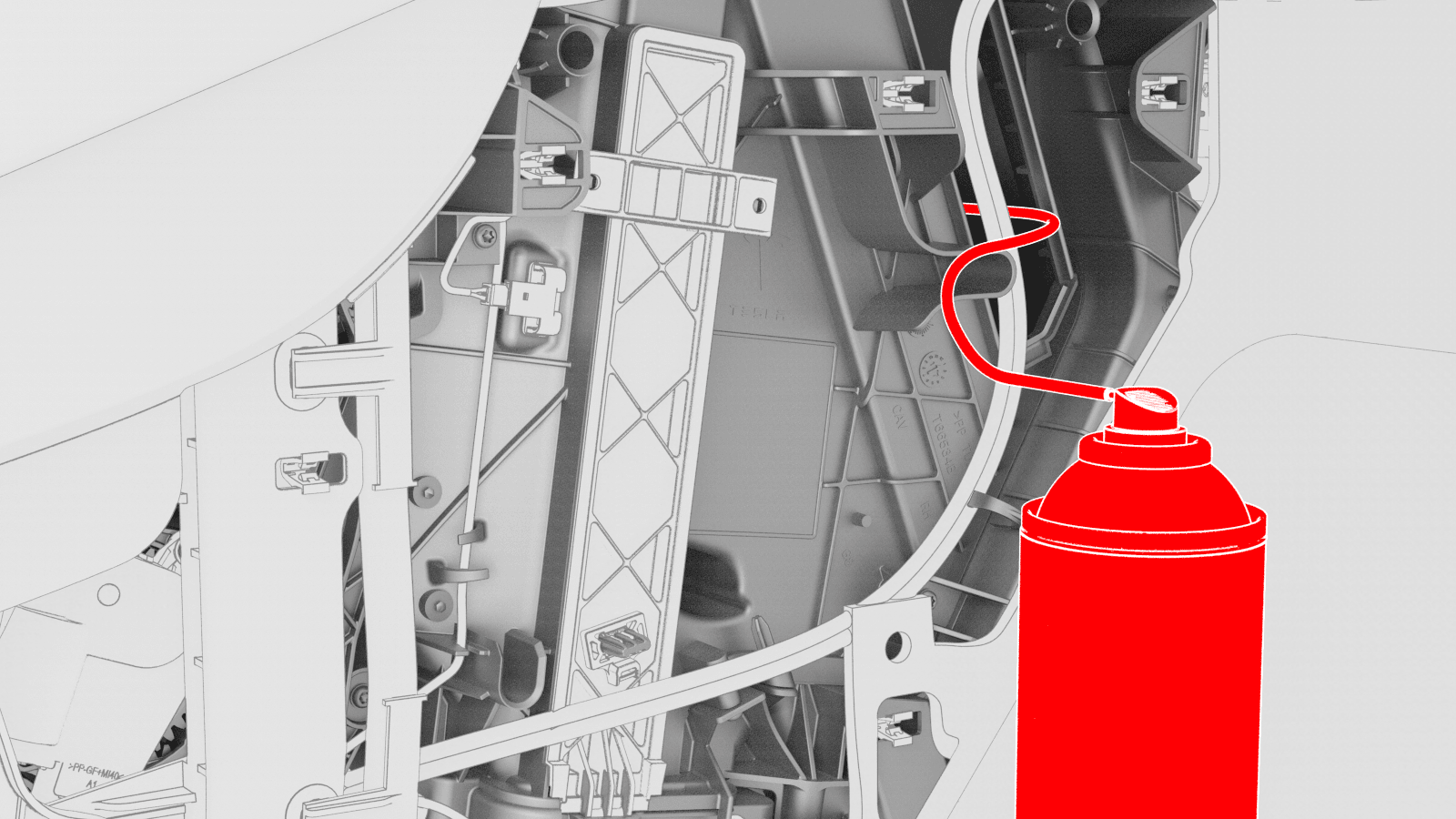 CAUTIONAvoid overspray onto electrical components (connectors, harnesses, body controllers, etc.).NoteBe sure to coat the entire evaporator with the cleaning solution.