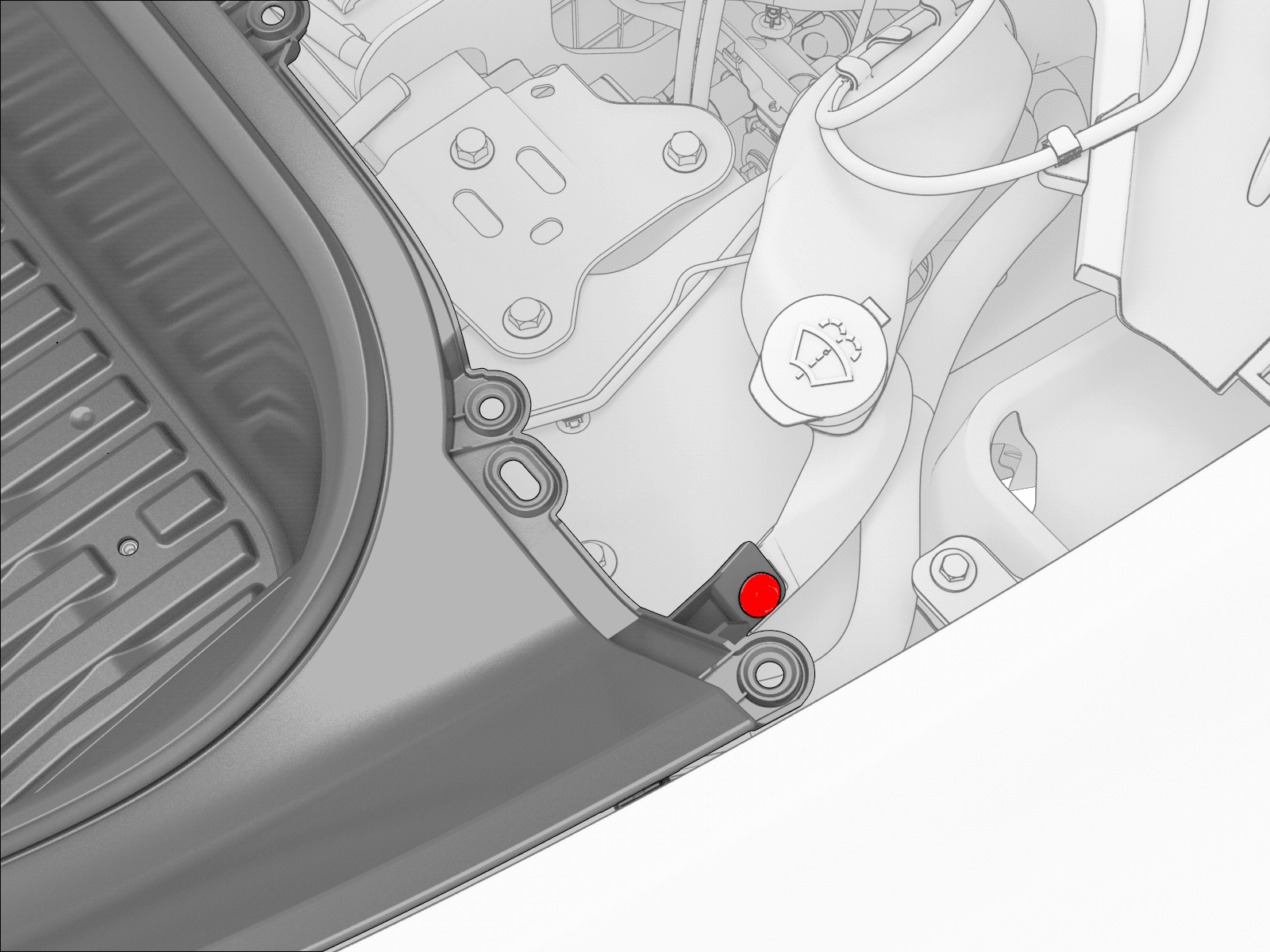 Fasten the clip that attaches the underhood storage unit to the washer fluid reservoir neck.