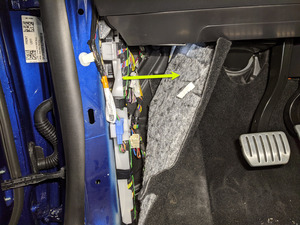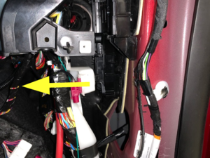 away from A-pillar to access LH front seat connector