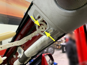 Note6x clips, Guide front upper corner groove out from headliner and place trim aside