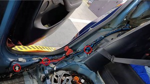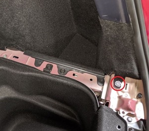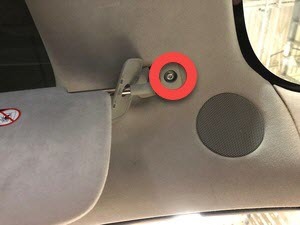 Note1x push clip, Clip goes through B-pillar and rear cabin carpet