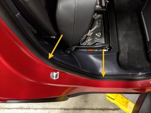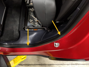 NoteSeat pillar and sill trim tabs underneath seal