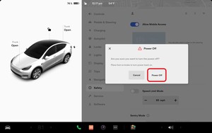 NoteVia Controls > Safety > Power Off, Select Power Off button at warning dialogue box