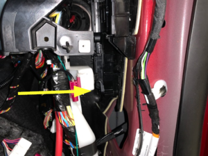 away from A-pillar to access RH front seat connector