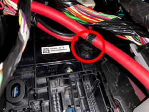 Note1x nut, 10mm, 6 Nm, 1x connector, Engage locking tab, Connect FRL first before connecting 12V to avoid damage to car computer