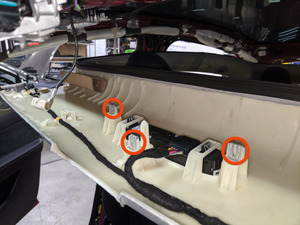 Note14x clips, Hold rear wall of frunk to keep from flexing while engaging front clips