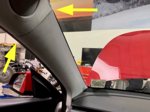 along lower A-pillar trim