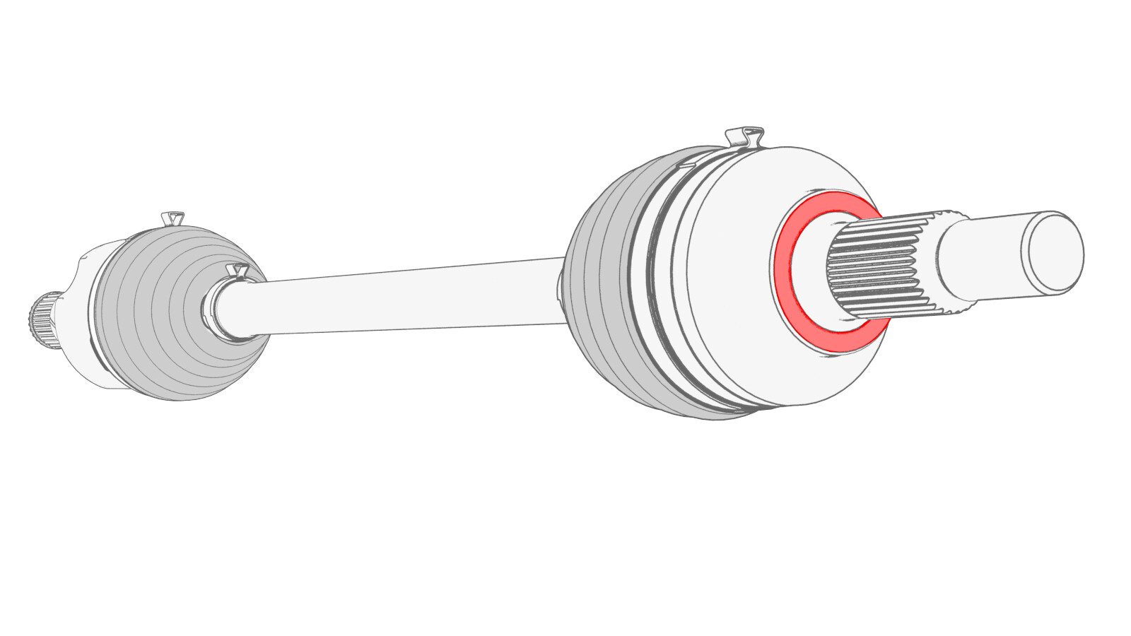 mating face on the outboard side of the LH rear drive unit halfshaft.